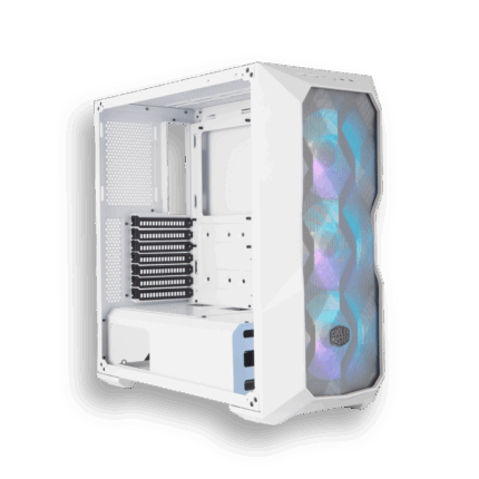 El MasterBox TD500 malla blanca encarnan “el rendimiento del flujo de aire” en una forma de arte . Tres ventiladores ARGB preinstalados inundan el sistema con flujo de aire e iluminación, lo que demuestra el efecto único de ARGB a través del vidrio templado cristalino.