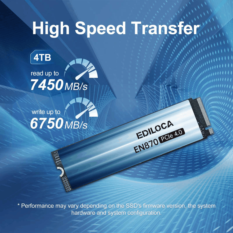 - SSD NVMe de alta velocidad : SSD EN870 PCIe 4.0 con velocidades de hasta 7450/6750 MB/s para jugadores, profesionales y creativos.