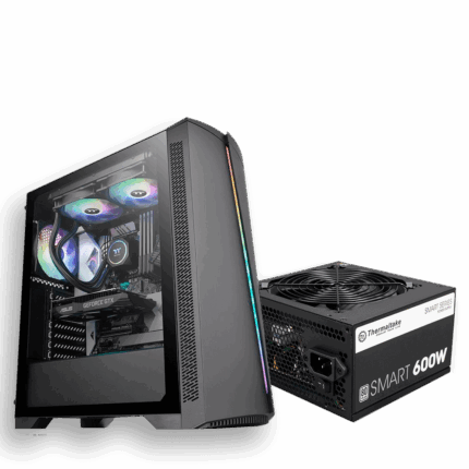 LANCOOL 215 cuenta con dos ventiladores ARGB de 200 mm preinstalados y un ventilador de 120 mm, que se combinan con paneles de malla y las rejillas de ventilación en forma de panal permiten una ventilación eficiente.. Equipado con dos ventiladores ARGB de 200 mm y un ventilador de 120 en la parte trasera. El panel de malla en el frente crea un gran flujo de aire sin traer polvo. Incluye ventilaciones filtradas en forma de panal superior e inferior, soporte amplio para combinación de ventilador/radiador y múltiples soluciones de administración de cables para que los usuarios de bricolaje se adapten a su configuración..THERMALTAKE H350 VTRGB + THERMALTAKE 600W 80P WHITE