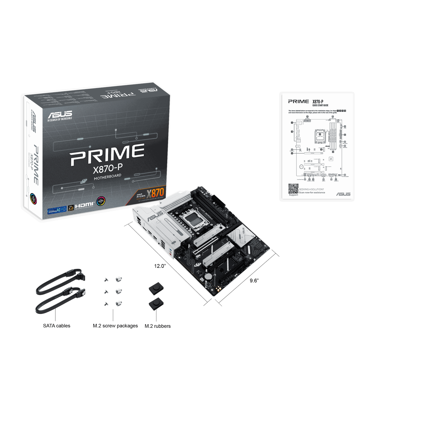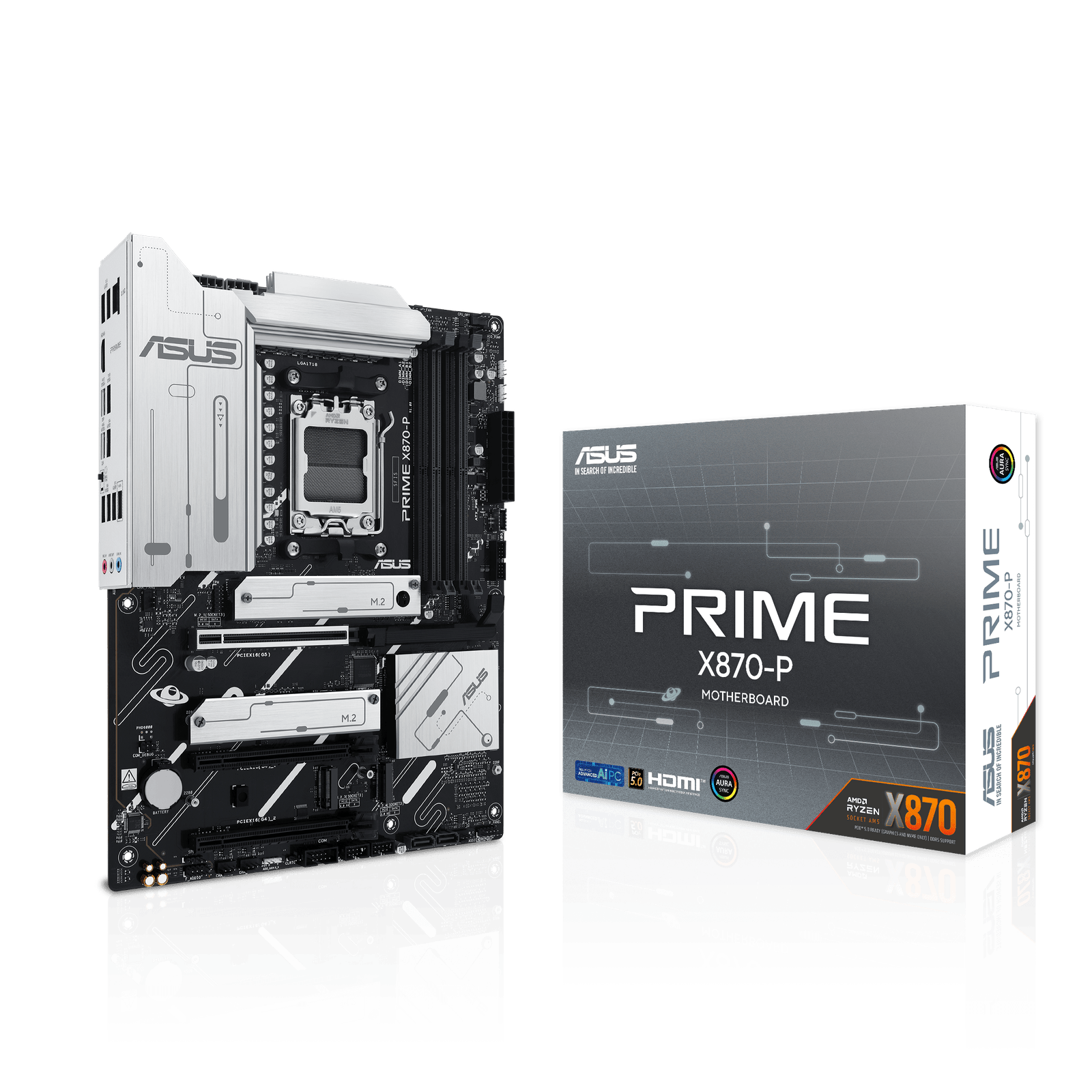 Las placas base ASUS de la serie Prime están diseñadas por expertos para liberar todo el potencial de los procesadores AMD Ryzen™ de la serie 9000. La placa base PRIME X870-P, que cuenta con un diseño de potencia robusto, soluciones de refrigeración completas y opciones de ajuste inteligente, proporciona a los usuarios y a los constructores de PC DIY una serie de optimizaciones de rendimiento a través de funciones intuitivas de software y firmware. Está diseñado para ser un PC preparado para la IA avanzada, ofreciendo la potencia y la conectividad necesarias para las exigentes aplicaciones de IA.