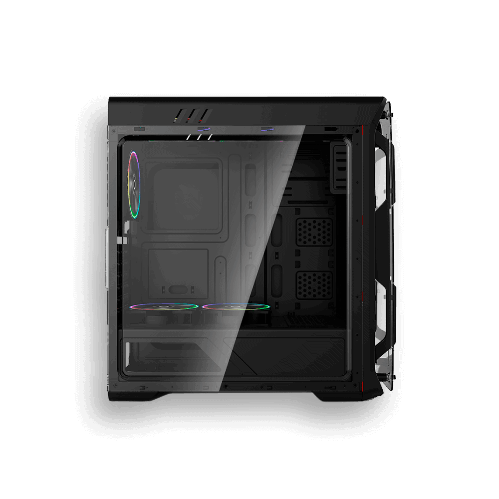 Paneles laterales acrílicos totalmente transparentes sin marco, que crean un efecto visual de alta transparencia. y deje que las luces del ventilador del arco iris de la carcasa interna y otros accesorios opcionales muestren el color brillante sin reservas.