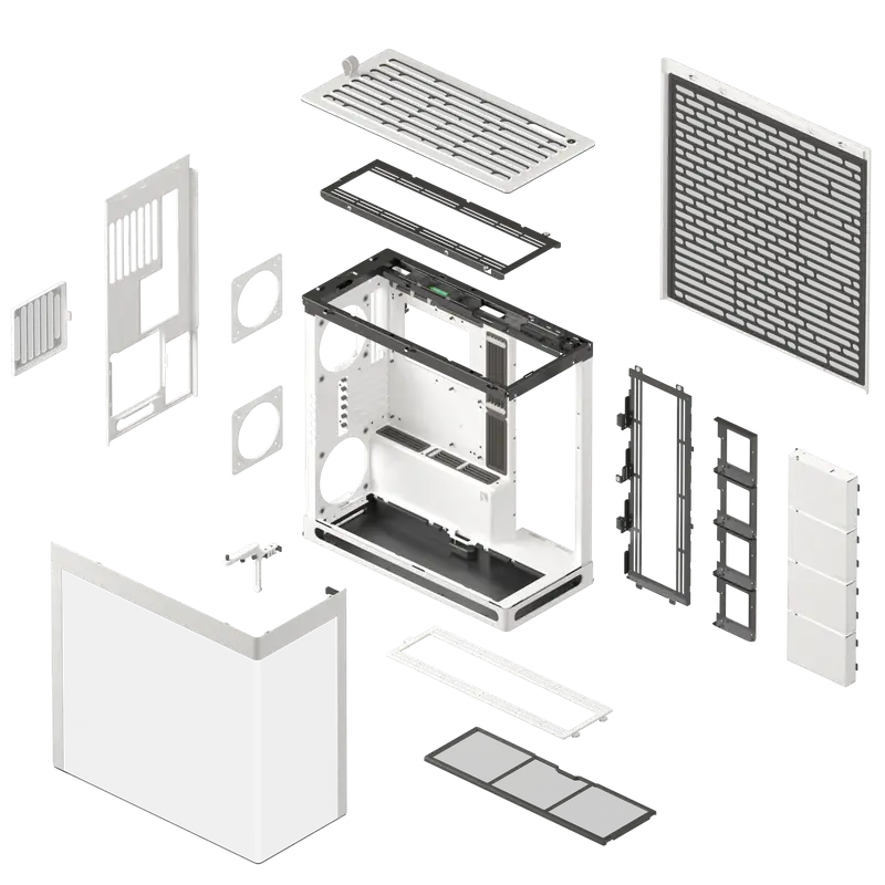 - Cinco accesorios opcionales: Kit de GPU vertical / Kit de GPU vertical / Kit de E/S adicional / Kit de malla frontal / Kit de E/S superior