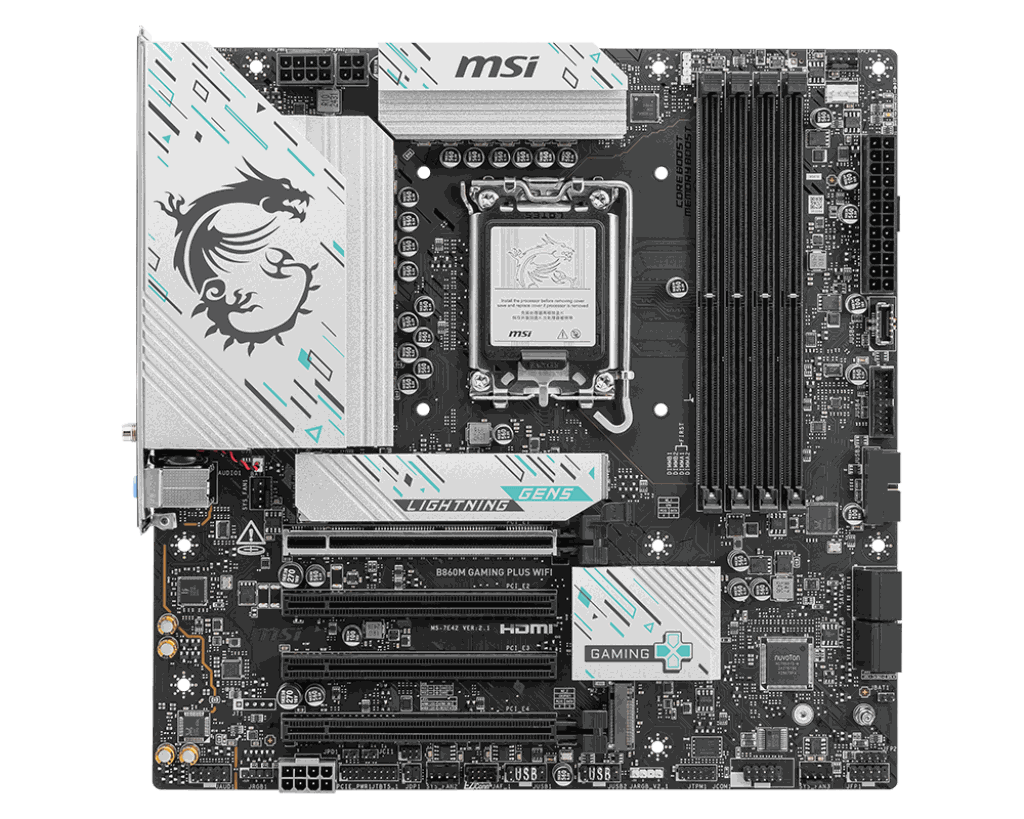 El B860 GAMING PLUS WIFI está diseñado para ofrecer una amplia conectividad, herramientas versátiles y una solución Wi-Fi de primera calidad para los jugadores que buscan una experiencia completa. Con puerto Thunderbolt 4, Wi-Fi 7 de máxima velocidad, LAN 5G, solución PCIe 5.0, alimentación PCIe suplementaria y funciones exclusivas EZ DIY, está preparado para jugar sin parar las 24 horas del día y optimizado para procesadores Intel Core Ultra.