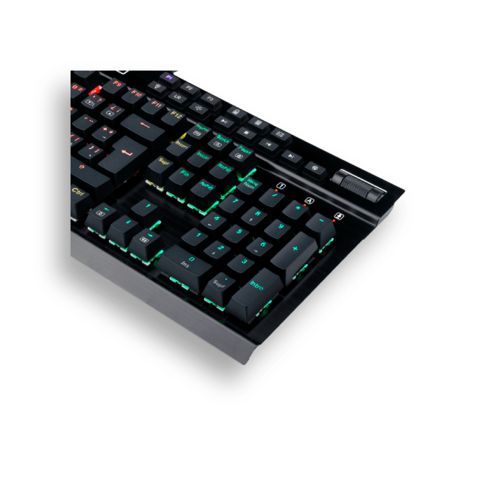 Marco sólido de aluminio para proveer durabilidad y estabilidad, rueda para controlar el volumen de aluminio y multimedia dedicadas, puerto adicional USB 2.1 ubicado en la parte posterior del teclado, reposamuñecas desmontable.