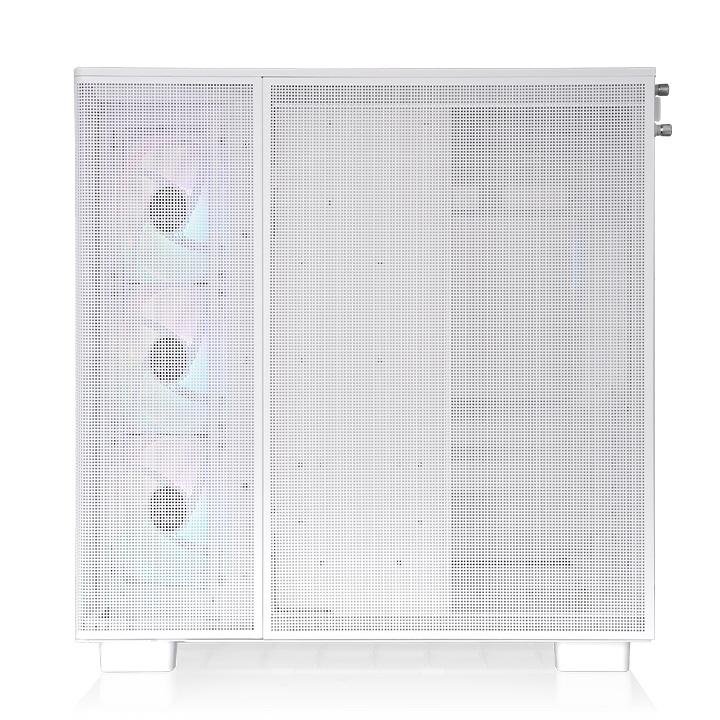 El chasis View 380 XL TG ARGB Snow Mid Tower es una caja ATX de doble cámara con soporte para placa base con conector oculto, cuatro ventiladores ARGB Lite con cojinete hidráulico de 120 mm y espacio para un radiador de 360 mm tanto en la parte superior como en el lado de la placa base.